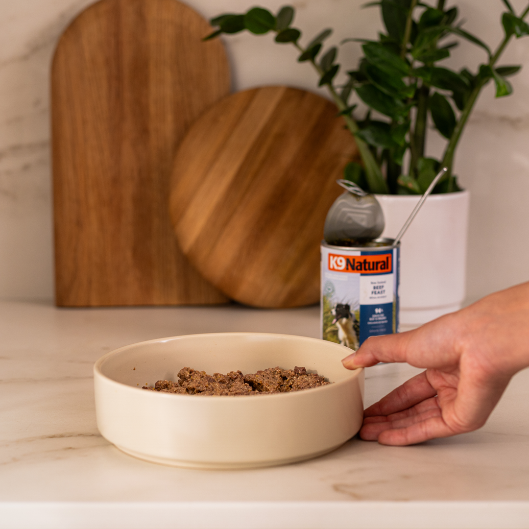 When transitioning your pet to our food, start by mixing a small amount into their current food, slowly increasing the amount over 10 days until they enjoy an entire bowl of K9 Natural or Feline Natural. Transitioning correctly over this time will give your pet (and their stomach) time to adjust to the high-meat, nutrient-dense content of our food.