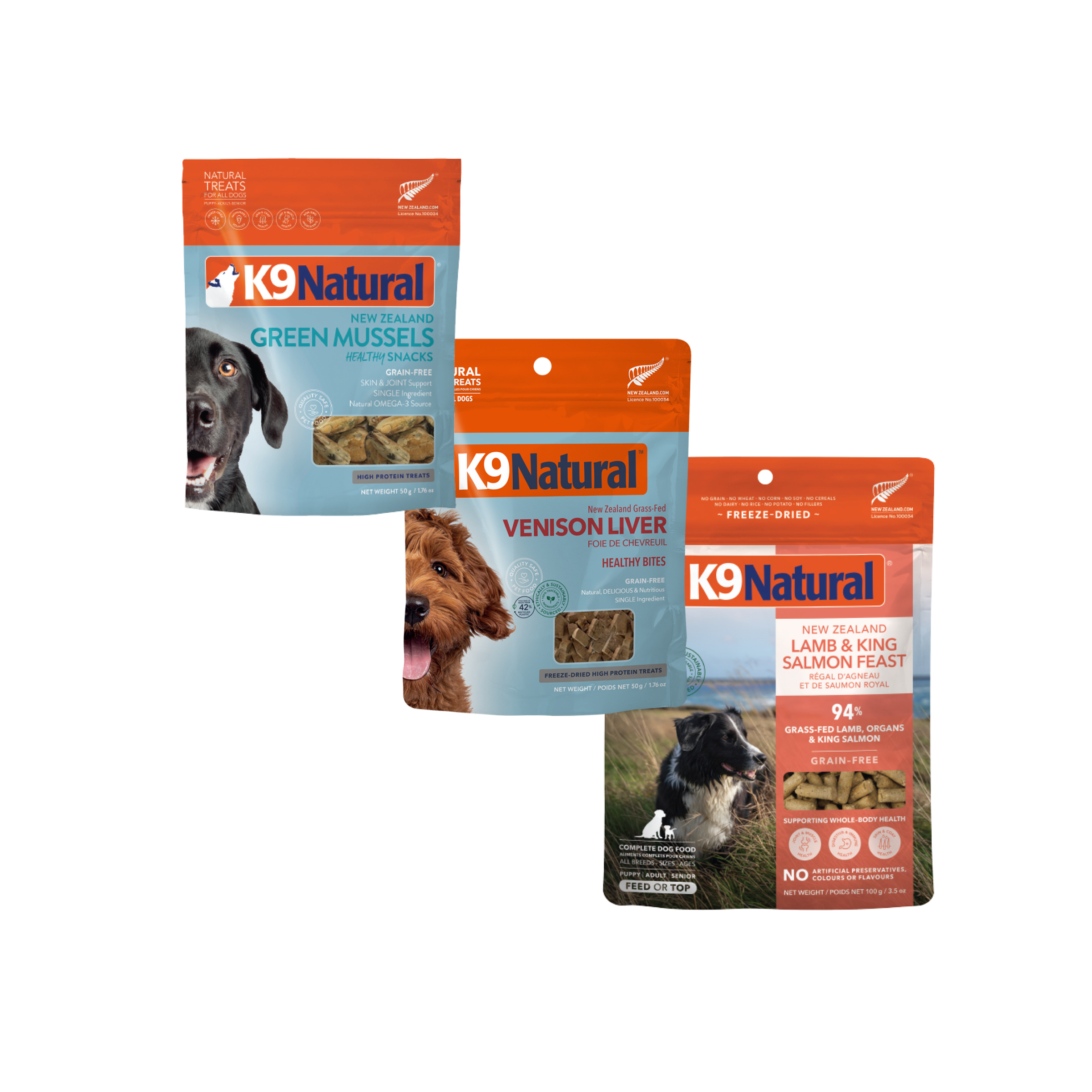 A curated bundle made with green mussels, venison liver, lamb and king salmon to support healthy skin and a soft, shiny coat. Crafted with care for dogs prone to dryness and dull coats and perfect for treating and topping meals.